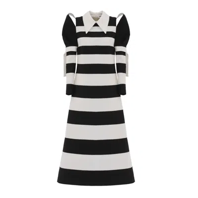 Women's Black / White Stylish Striped Cold Shoulder Long Sleeve Dress - Black White In Pattern