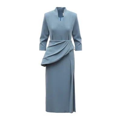 Women's Blue / White Long Sleeve Formal Midi Dress – Light Blue