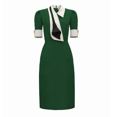 Women's Formal Fitted Dress With White Collar - Office To Evening Style Green