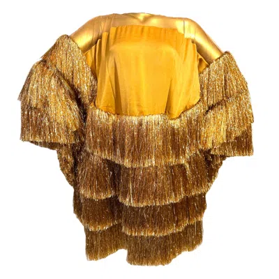 Women's Almond Gold Luxe Chacha Dress – Backless Fringe Party Dress