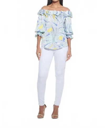 Rene Off The Shoulder Top In White In Blue