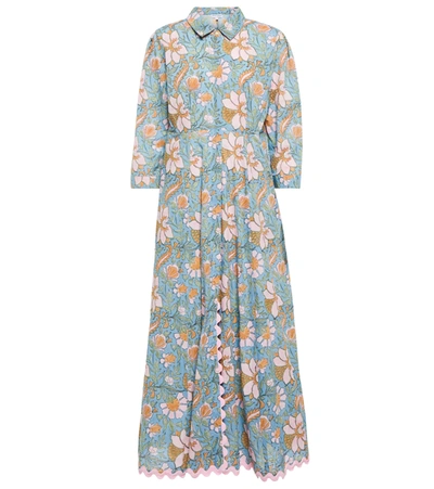 Floral Cotton Maxi Dress In Blue