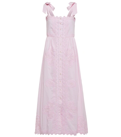 Embroidered Cotton Minidress In Pink