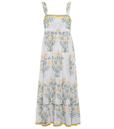 Floral Cotton Maxi Dress In White/r.blue/aqua