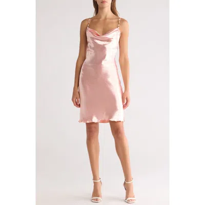 Cowl Neck Hammered Satin Dress In Rose