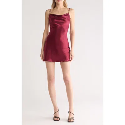 Satin Cowl Neck Slip Dress In Burgundy