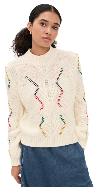 Overstitch Cable Knit Sweater White Alyssum (cream) Multi In Neutral