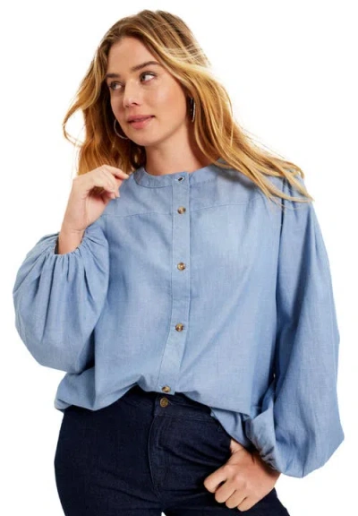 Puff Sleeve Chambray Jacket In Blue