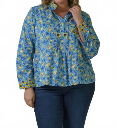 Button Down Long Sleeve Floral Blouse - Plus In Moon Blue