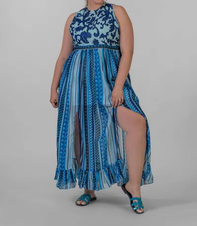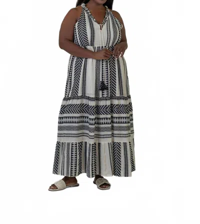 Grecian V-neck Maxi Dress - Plus In Black And Cream In Multi
