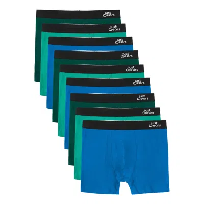 Men's Green / Blue Super Soft Boxer Briefs - Anti-chafe & No Ride Up Design - Nine Pack - Blues & Gr In Green/blue