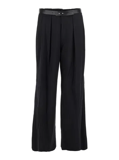 Black Trousers With Built-in Belt And Pleated Design In Wool Blend Man