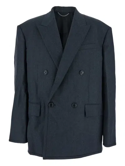 Grey Jacket With Wide Notched Revers And Dropped Shoulders