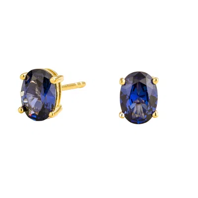 Women's Blue / Gold Ovo Gold Earrings Set With Blue Sapphire In Multi