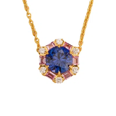 Women's Blue / Pink / Gold Melba Necklace In Blue Sapphire, Pink Sapphire & Diamond In Multi