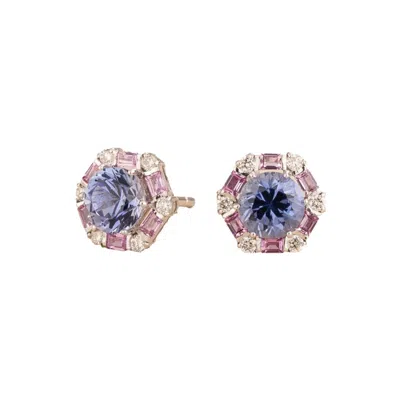 Women's White / Silver / Purple Florea White Gold Earrings Pink Sapphire & Diamond In Multi