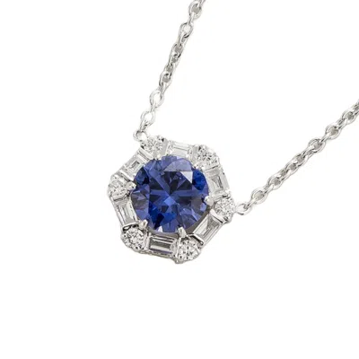 Women's White / Silver / Blue Pristi White Gold Necklace With Diamonds & Ceylon Blue Sapphire In Multi