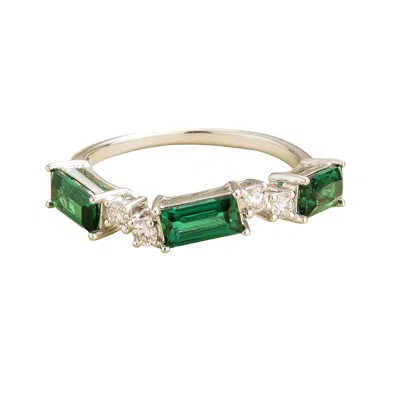 Women's Green / White / Gold Markiz White Gold Ring In Emerald & Diamond In Multi