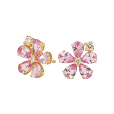 Women's Pink / Gold Ori Pink Sapphires & Diamonds Gold Earrings In Multi