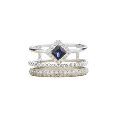 Women's White / Silver / Blue Amici White Gold Ring In Blue Sapphire And Diamond In Multi