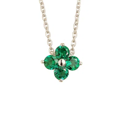 Women's Green / White Petale White Gold Necklace Emerald