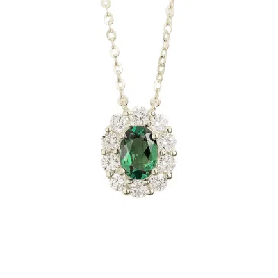 Women's Silver / Green / White Prill White Gold Necklace Set With Emerald & Diamond In Multi
