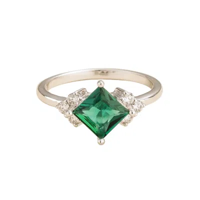 Women's White / Silver / Green Amore White Gold Ring Emerald & Diamond In Multi