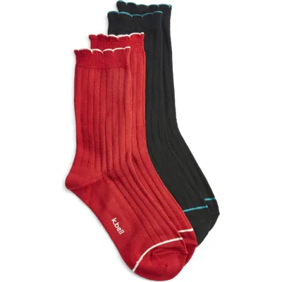K Bell Socks Assorted 2-pack Scalloped Rib Crew Socks In Red