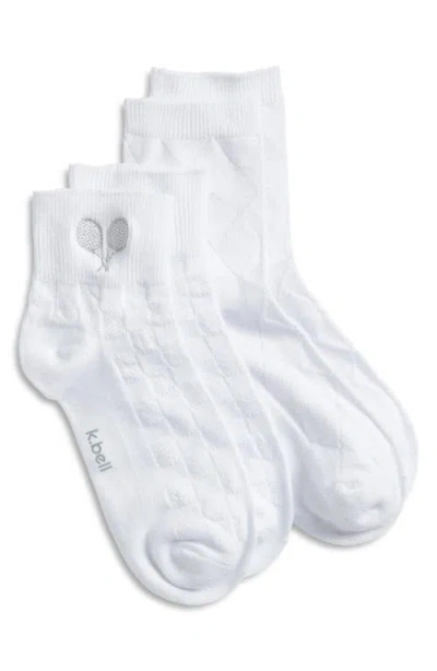 K Bell Socks Clubhouse Tennis Assorted 2-pack Quarter Socks In White