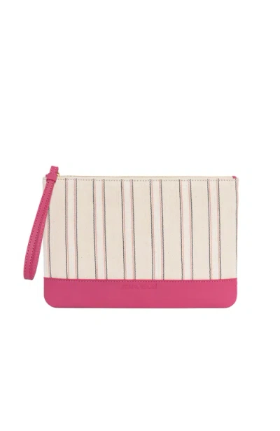 K'ai & Vrosi Defne Calfskin & Handloomed Fabric Clutch In Pink