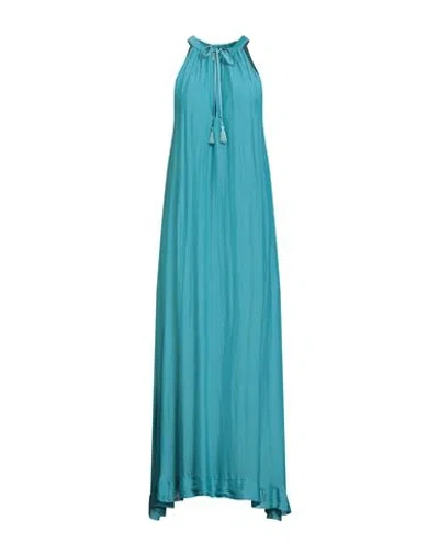 Woman Maxi Dress Turquoise Size 8 Viscose, Silk