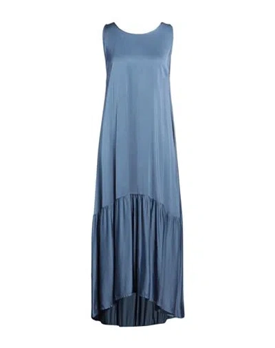 Woman Maxi Dress Navy Size 8 Viscose, Silk In Blue