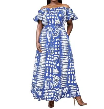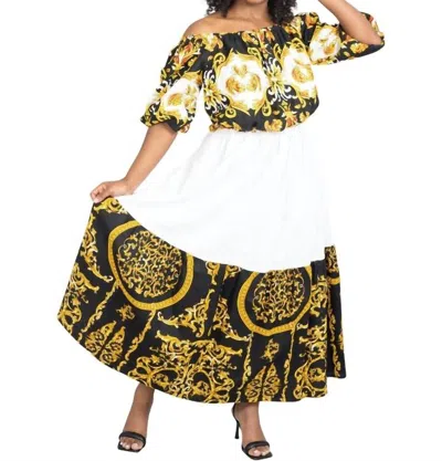 African Print Off-shoulder Maxi Dress In White In Multi