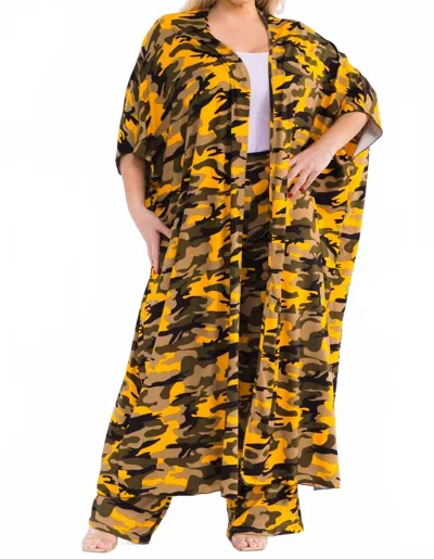 Camo Print Kaftan And Pants Set In Yellow Multi