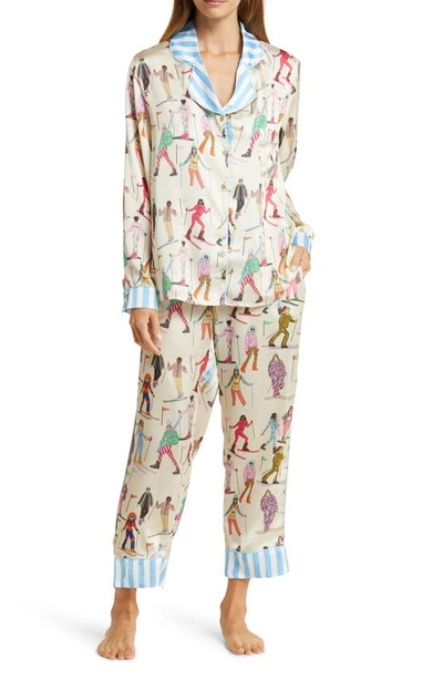 Skiing Print Long Pajamas In Neutral