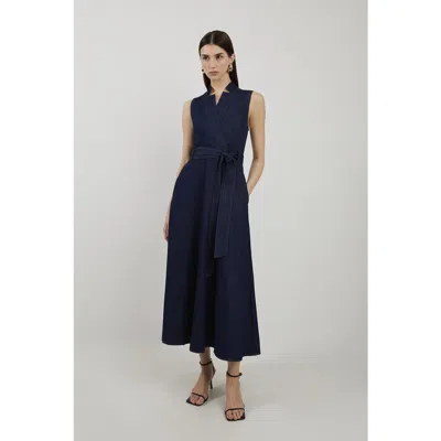 Soft Tailored Pleated Panel Midaxi Dress In Green