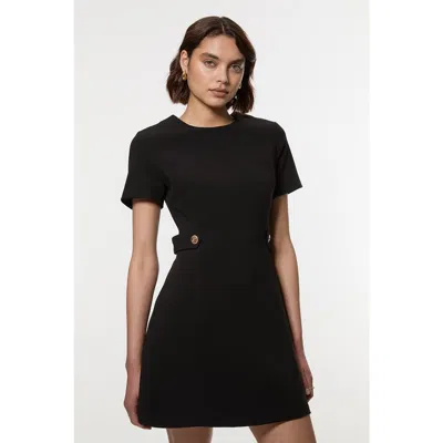 Zip Detail Chiffon Sleeve Knit Dress In Black