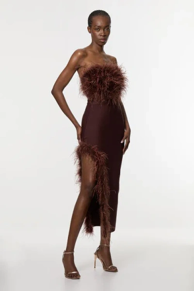 Ponte And Pu Mix Pencil Midi Dress In Black