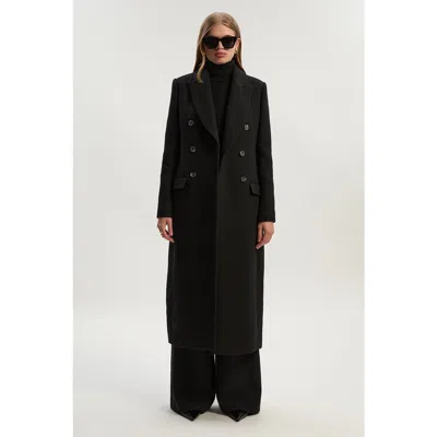 Strong Shoulder Belted Maxi Trench Coat In Green