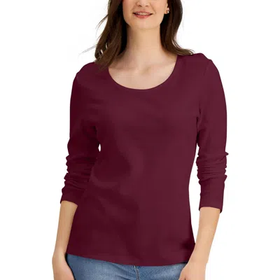 Womens Cotton Long Sleeve Pullover Top In Purple