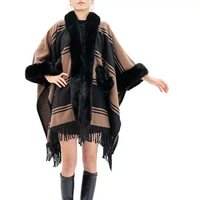 Soft Ruana Womens Striped Poncho In Brown
