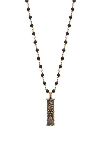 Men's Soulful Exploration Onyx Karma Circle Black String Necklace In Pink
