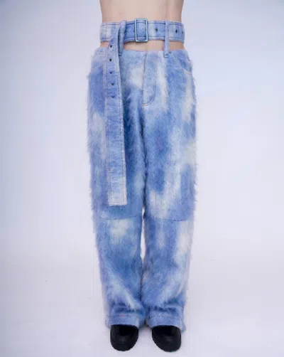Hand-painted Fluffy Denim Deconstructed Trousers In Dawn Blue In Multi