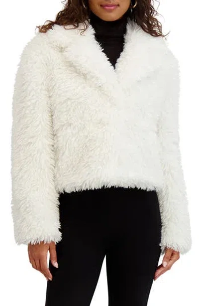Faux Fur Lined Faux Leather Hooded Jacket In Black