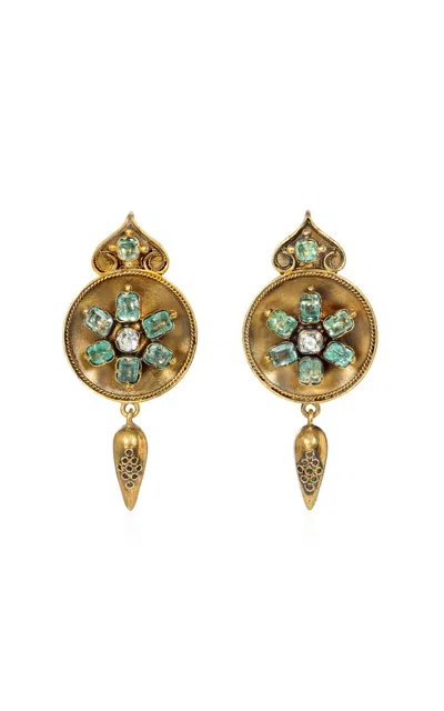 Van Cleef & Arpels 18k Yellow Gold Diamond Emerald And Sapphire Earrings