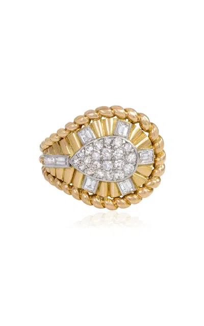 French Art Deco Bombé Platinum Diamond Ring In White