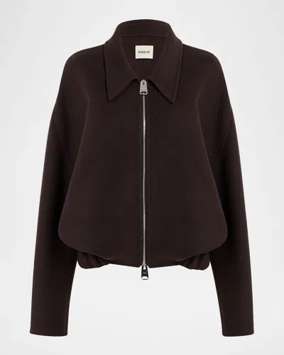 With industry experience as a design director at Vera Wang and Maiyet, Parsons graduate Catherine Holstein debuted her womenswear line Khaite for Fall/Winter 2015. A study in contrasts-- between masculine and feminine, severity and softness, fluidity and structure-- the label advances a refreshingly polished take on American sportswear staples. Elegantly pared-down shapes and a muted color palette highlight Holstein’s expertise in luxuriously textural fabrics. Inspired by tried-and-true vintage styles, the label’s stand-out Vanessa jean pairs a feminine high-rise with a modern straight-leg fit. Mid-length skirts and flared trousers are crafted in structural cotton twill, while long satin dresses, cotton poplin shirts, and crepe blouses are elevated by unexpected details. Mainstays such as soft cashmere knits, and sensuous jersey bodysuits round out Khaite’s collection of easy-to-wear basics.