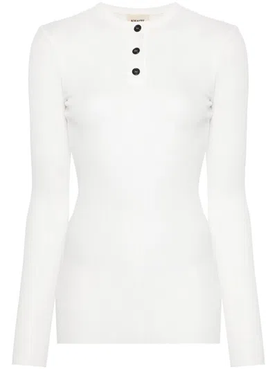With industry experience as a design director at Vera Wang and Maiyet, Parsons graduate Catherine Holstein debuted her womenswear line Khaite for Fall/Winter 2015. A study in contrasts-- between masculine and feminine, severity and softness, fluidity and structure-- the label advances a refreshingly polished take on American sportswear staples. Elegantly pared-down shapes and a muted color palette highlight Holstein’s expertise in luxuriously textural fabrics. Inspired by tried-and-true vintage styles, the label’s stand-out Vanessa jean pairs a feminine high-rise with a modern straight-leg fit. Mid-length skirts and flared trousers are crafted in structural cotton twill, while long satin dresses, cotton poplin shirts, and crepe blouses are elevated by unexpected details. Mainstays such as soft cashmere knits, and sensuous jersey bodysuits round out Khaite’s collection of easy-to-wear basics.