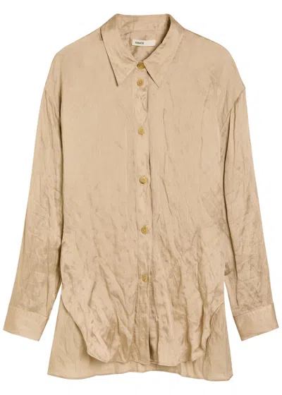 With industry experience as a design director at Vera Wang and Maiyet, Parsons graduate Catherine Holstein debuted her womenswear line Khaite for Fall/Winter 2015. A study in contrasts-- between masculine and feminine, severity and softness, fluidity and structure-- the label advances a refreshingly polished take on American sportswear staples. Elegantly pared-down shapes and a muted color palette highlight Holstein’s expertise in luxuriously textural fabrics. Inspired by tried-and-true vintage styles, the label’s stand-out Vanessa jean pairs a feminine high-rise with a modern straight-leg fit. Mid-length skirts and flared trousers are crafted in structural cotton twill, while long satin dresses, cotton poplin shirts, and crepe blouses are elevated by unexpected details. Mainstays such as soft cashmere knits, and sensuous jersey bodysuits round out Khaite’s collection of easy-to-wear basics.