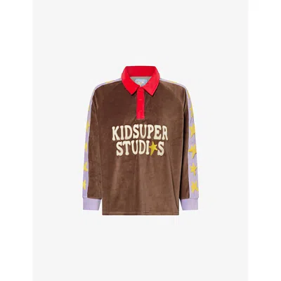Mens Dark Brown Patchwork Face Zip-through Cotton-jersey Hoody In Black